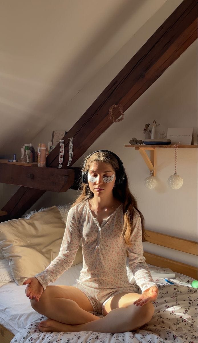 Get as cozy as possible in your bed. Appreciate how comfy you feel in bed, maybe listen to some relaxing lofi.